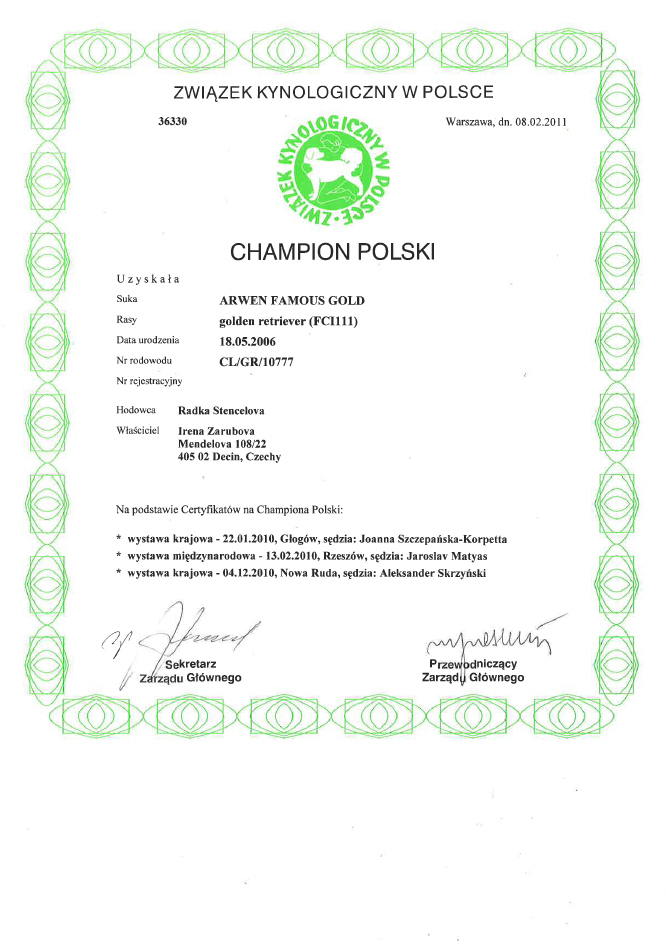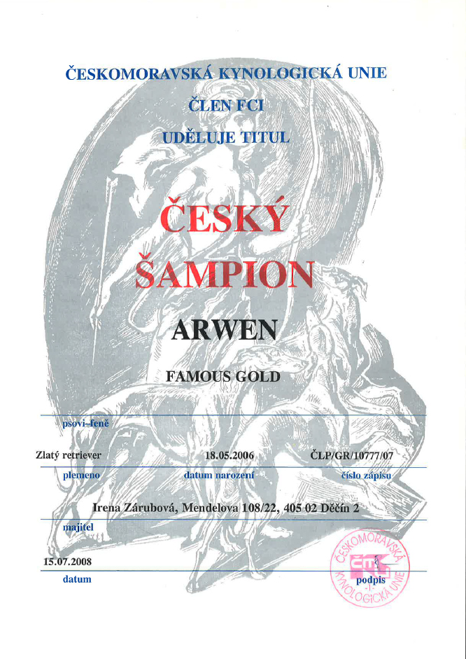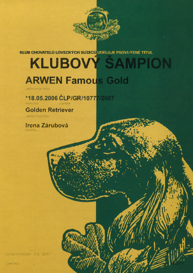 Chovatel: Radka Štencelová (CHS Famous Gold)