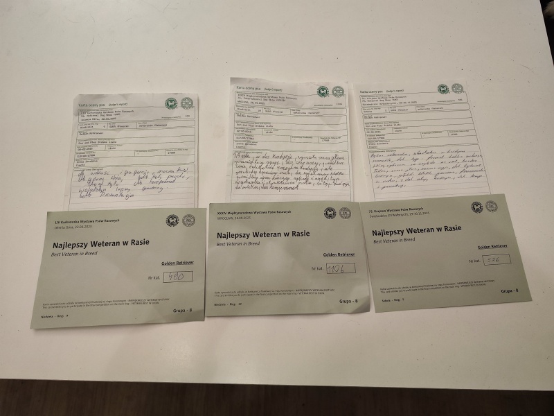 28.9.2025 Mezinárodní výstava Wroclaw: Run And Play Brdské zlato "Mollynka", třída veteránů: EXCELLENT 1, VETERAN WINNER, BEST VETERAN IN BREED, CACIB-VETERAN, Rozhodčí Katarzyna Szutkiewicz.